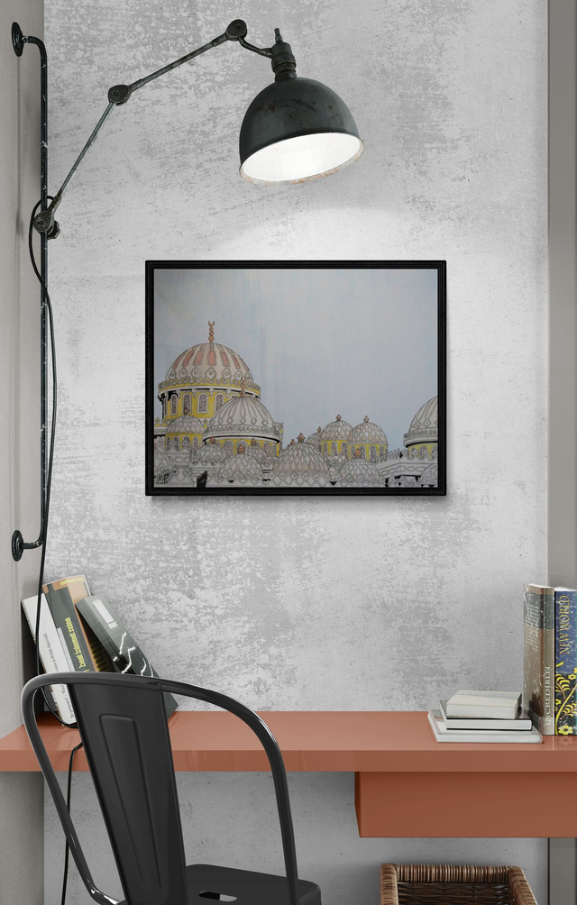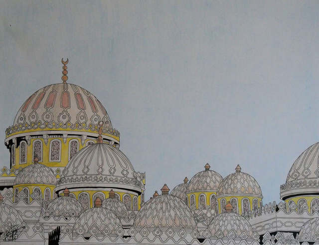 Ce dessin original met en lumière la majesté sereine de la Mosquée El Mina de Hurghada, joyau d’architecture islamique égyptienne. Tracée avec finesse au crayon de bois, l’œuvre capte l’élan vertical de ses minarets, la délicatesse des motifs sculptés et l’harmonie de ses courbes.